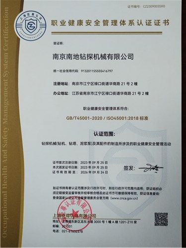 企業(yè)通過ISO9001:2015質(zhì)量管理體系認(rèn)證、ISO14001:2015環(huán)境管理體系認(rèn)證、ISO45001:2018職業(yè)健康安全管理體系認(rèn)證。